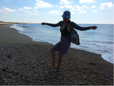 I watch a young woman dancing on a sea-born pile of rounded stones—slapping, thrashing, pounding her body-flesh to beach-flesh. Drenching her creature self once again in primal wetness, I imagine release of the weight of sorrow mixed with the possibilities of next steps, knowing that even if the world were ending someone would plant a seed.