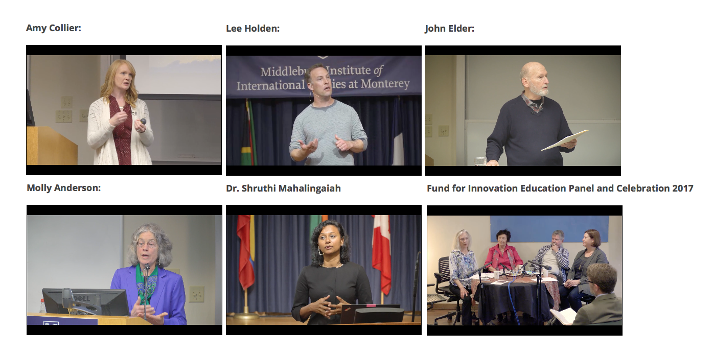 A series of videos from the 2017 Embodied Intelligence Lecture Series and Fund For Innovation events at the Middlebury Institute of International Studies.